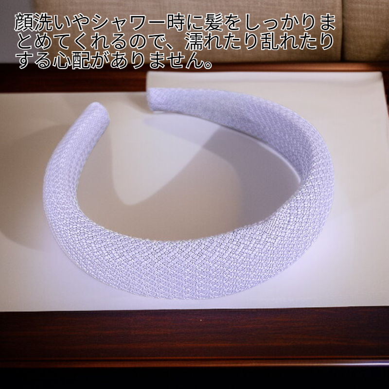 ● 顔洗いやシャワー時に髪をしっかりまとめてくれるので、濡れたり乱れたりする心配がありません。