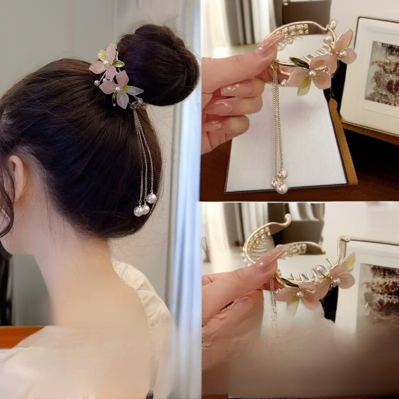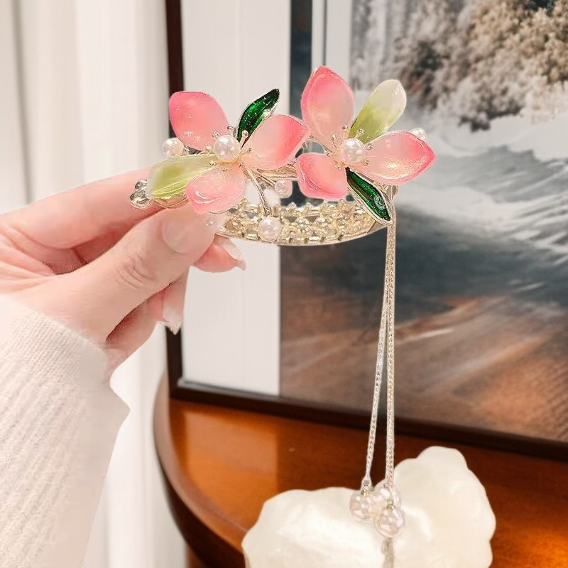 新中式桃花タッセル団子ヘアピン・ポニーテール髪飾り